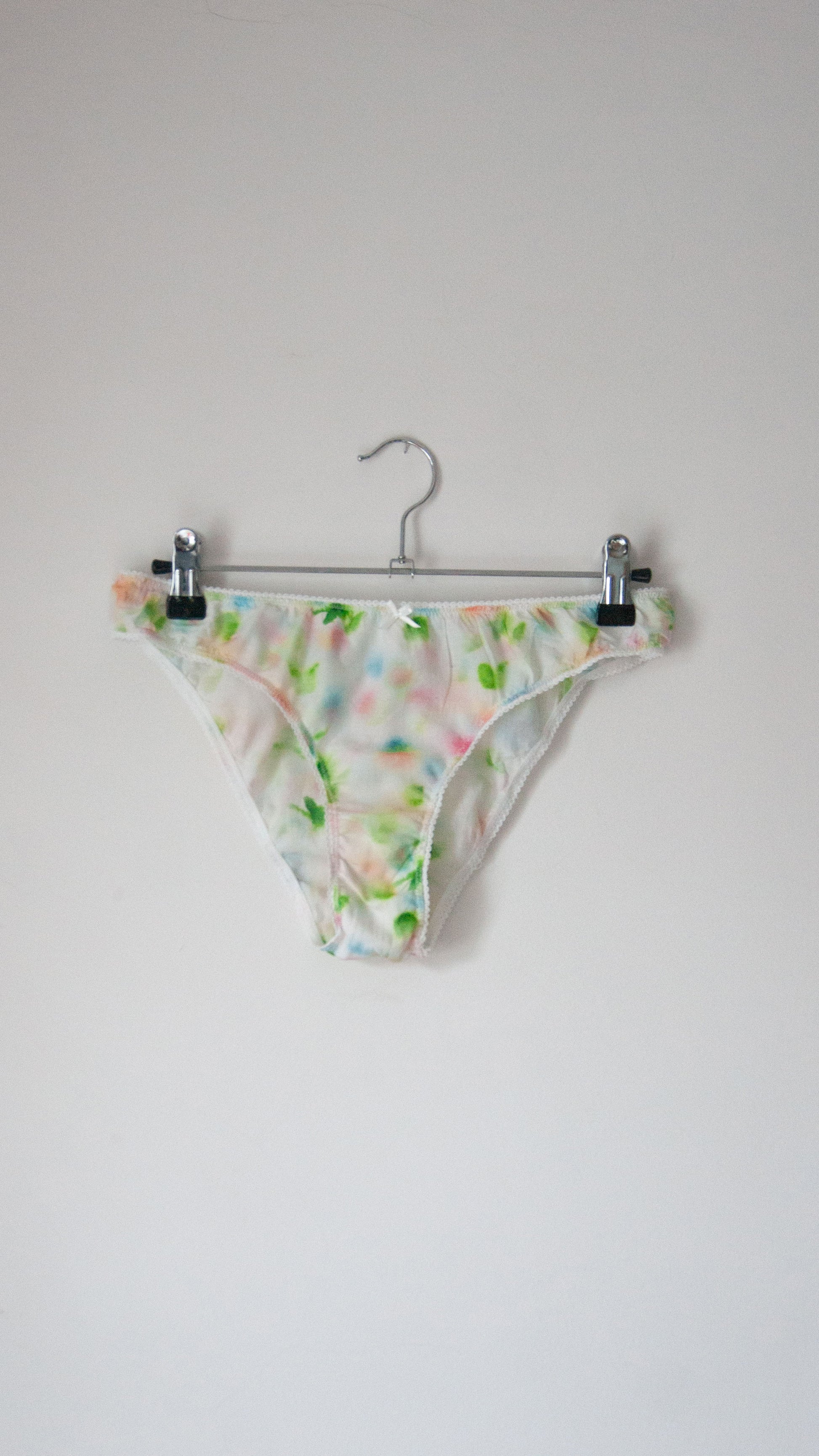 A soft, lightweight and colourful panty, made from leftover fabric from the Flowy Liberty top. The print, originally a hand-painted watercolor, has been transferred onto GOTS-certified cotton voile, using Oeko-Tex certified inks. Each piece is lined with bright white cotton jersey from the dormant stock of a luxury Italian house.